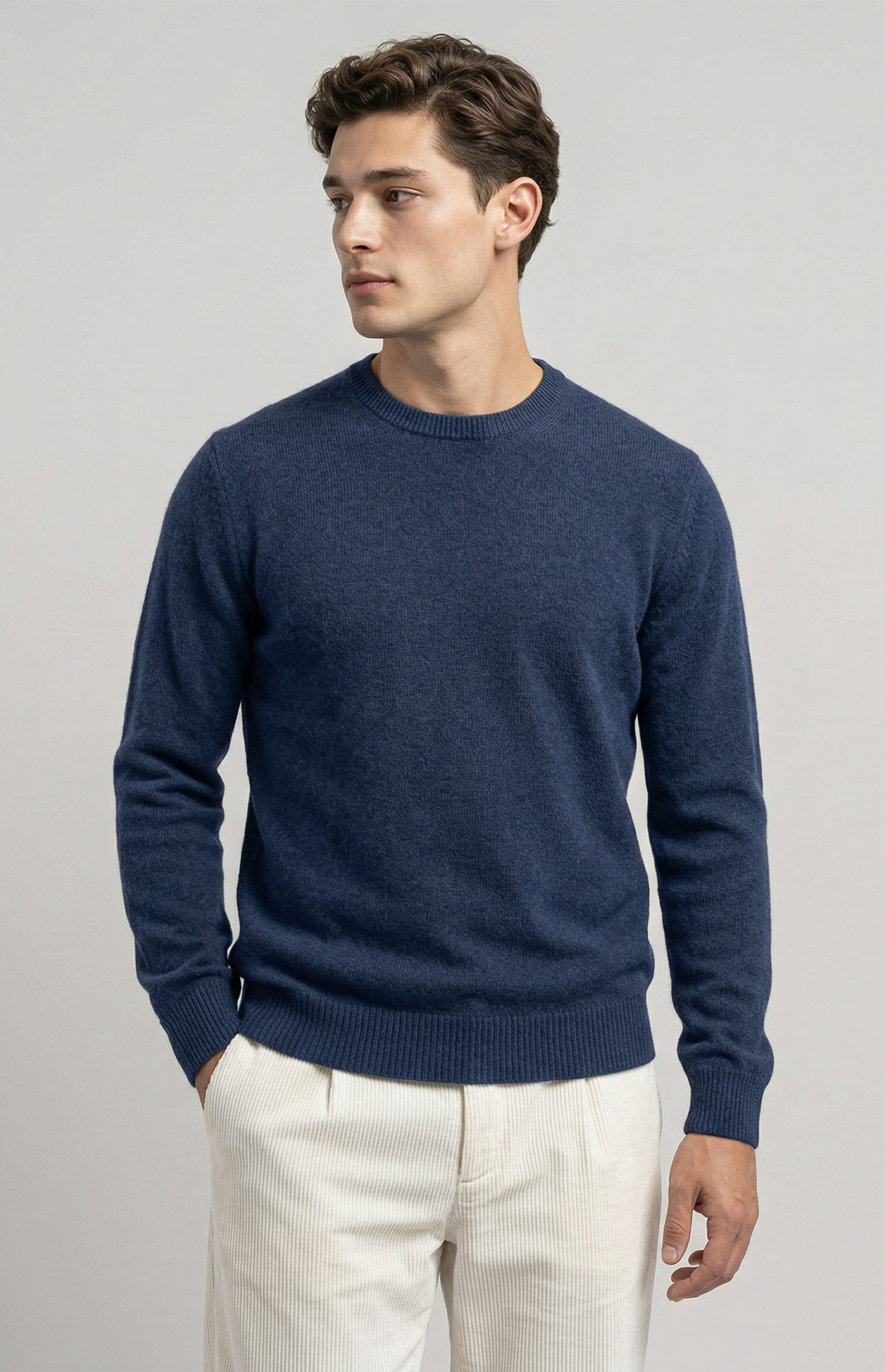 Classic fine single-ply cashmere jumper with a crew neck that combines lightness and supreme comfort. The fine, airy weave gently envelops the body without adding bulk, perfect for mid-season wear. Refined ribbed finishes on the neck, cuffs and hem complete the minimalist design. A soft and cosy fit that enhances the quality of the material. A versatile garment that becomes the star of any conscious wardrobe.