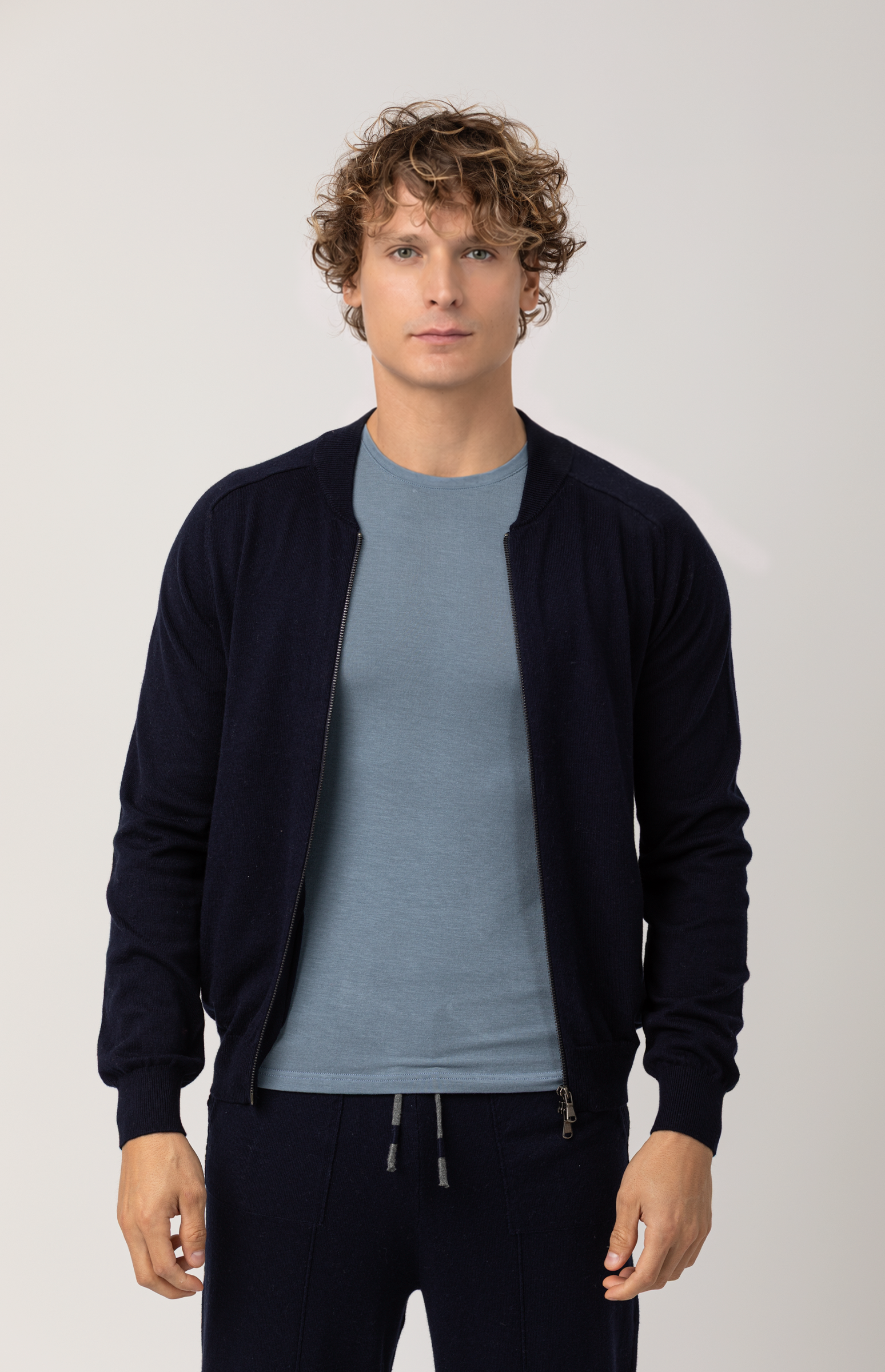 Full Zip Cotton-Cashmere Bomber Jacket
