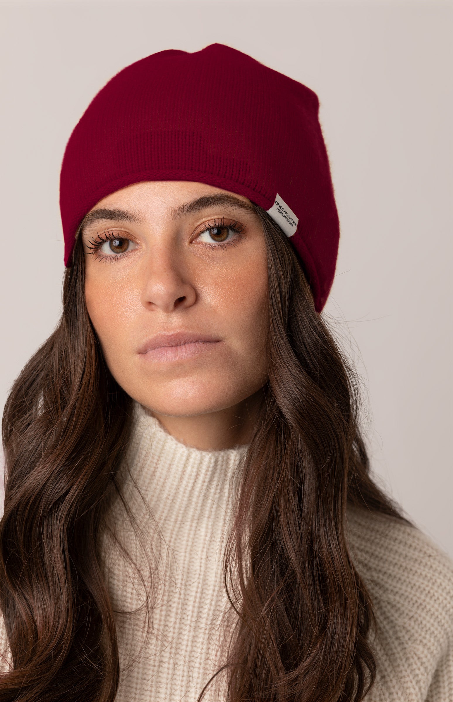 The beanie-shaped cashmere beanie is a stylish, soft and super comfortable accessory. Its distinctive shape, which fits perfectly on the head without being too tight or too loose, is a modern and chic choice for winter. The name “bean shape” refers precisely to its silhouette, which follows the natural lines of the head without the exaggerated volume of some other types of beanies, creating a refined yet relaxed look.