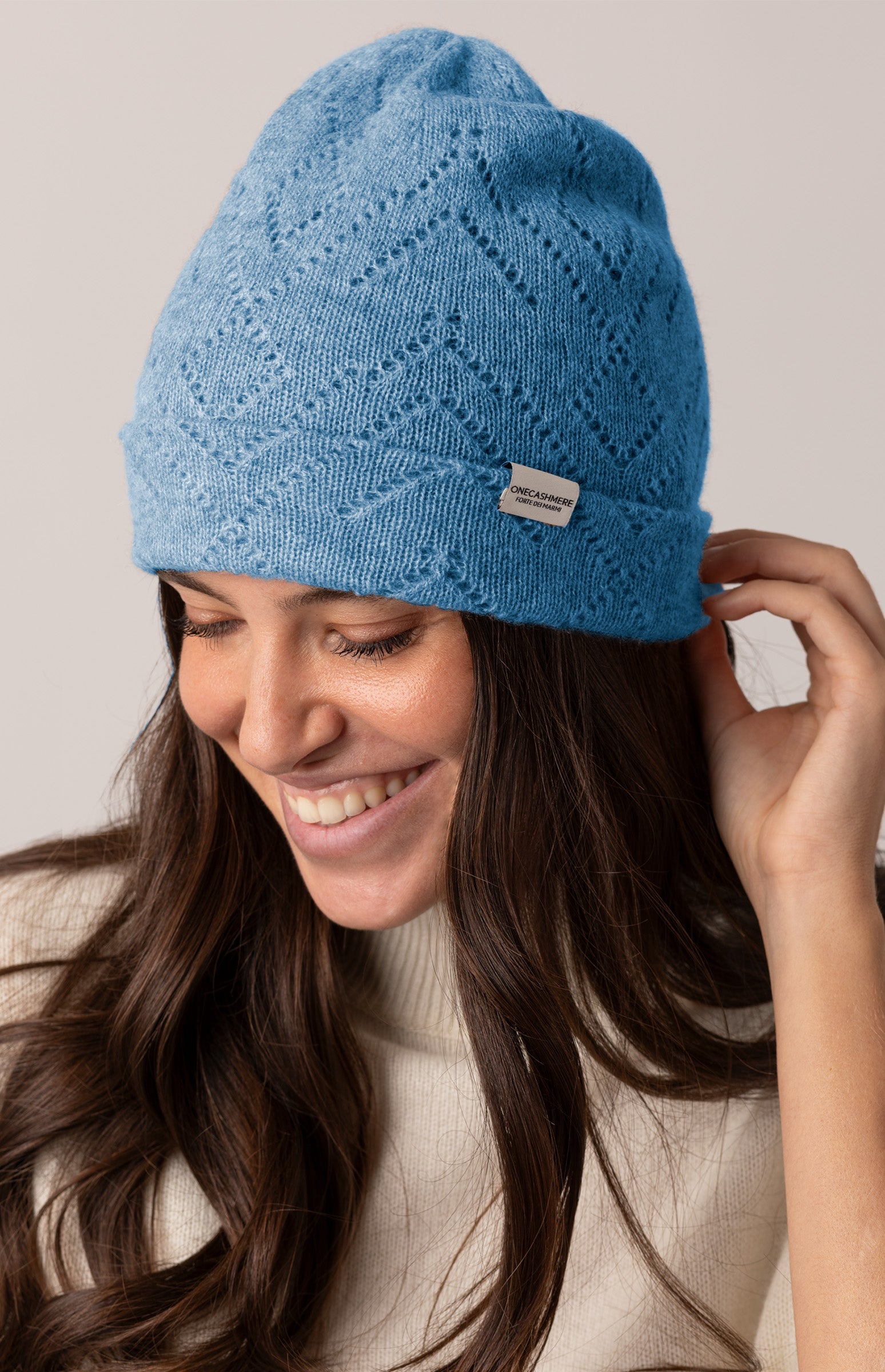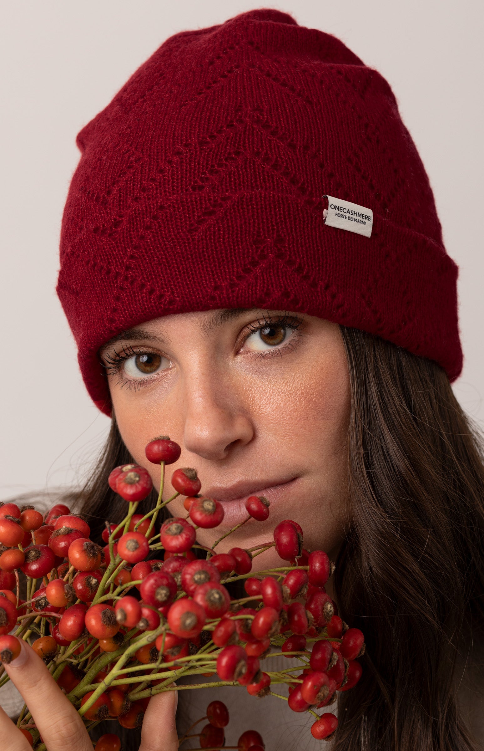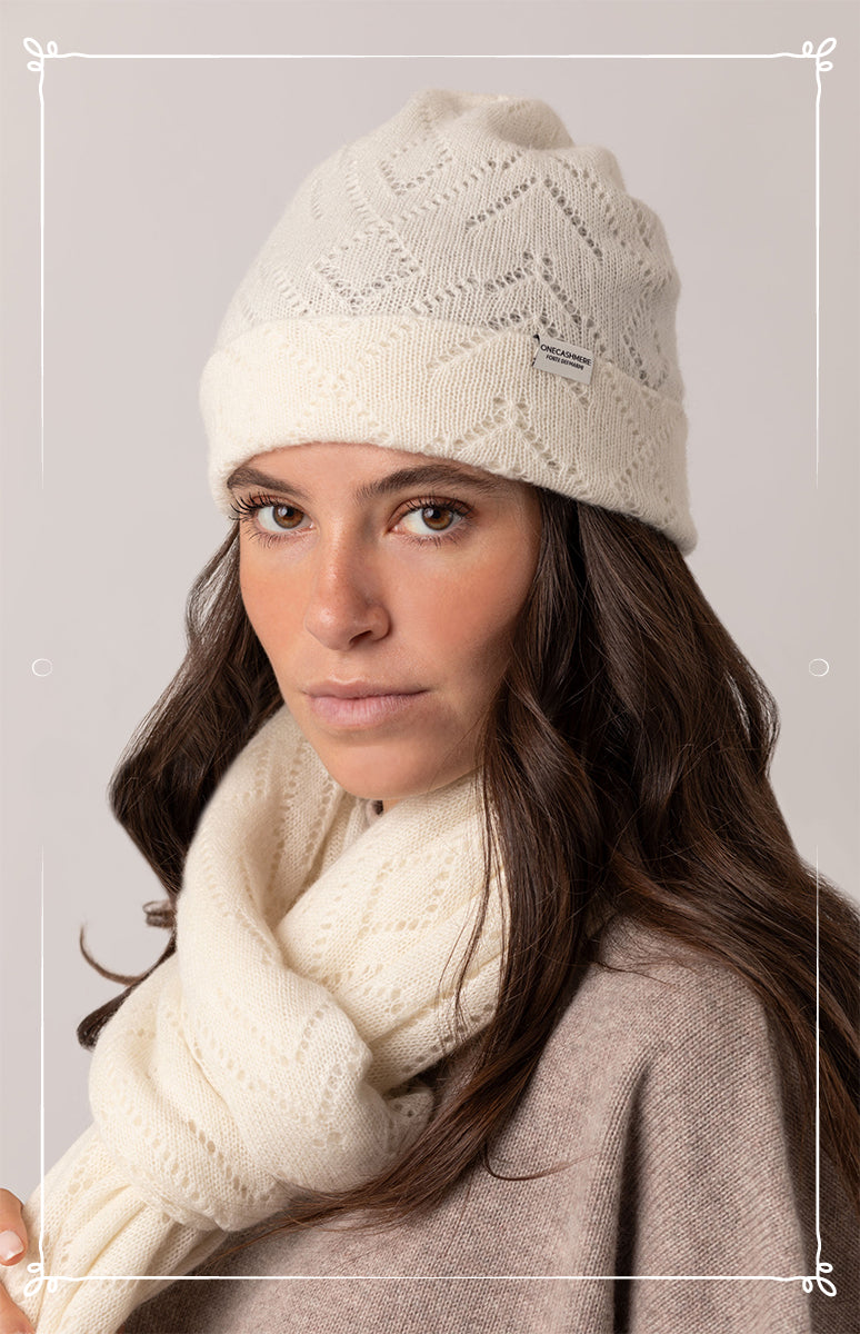 The Pointelle-embellished cashmere beanie hat is definitely a classy accessory, combining comfort, warmth and a touch of elegance thanks to the refined texture of the stitch. The Pointelle workmanship, with its delicate openwork effect, adds light and a sophisticated air to cashmere, making the beanie not only functional but also a true designer piece. Pair it with its scarf.