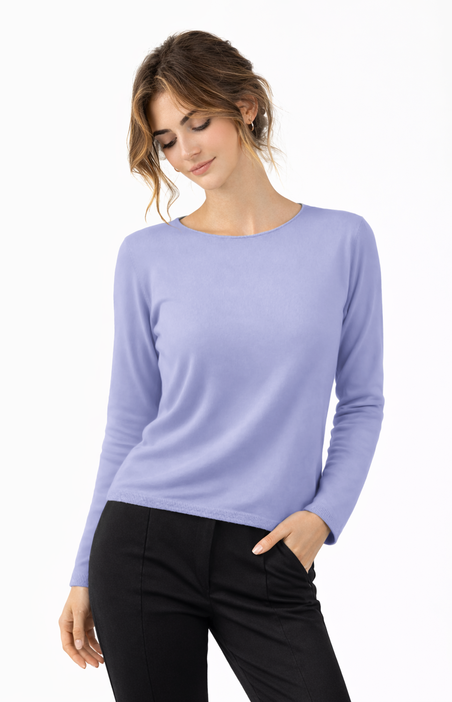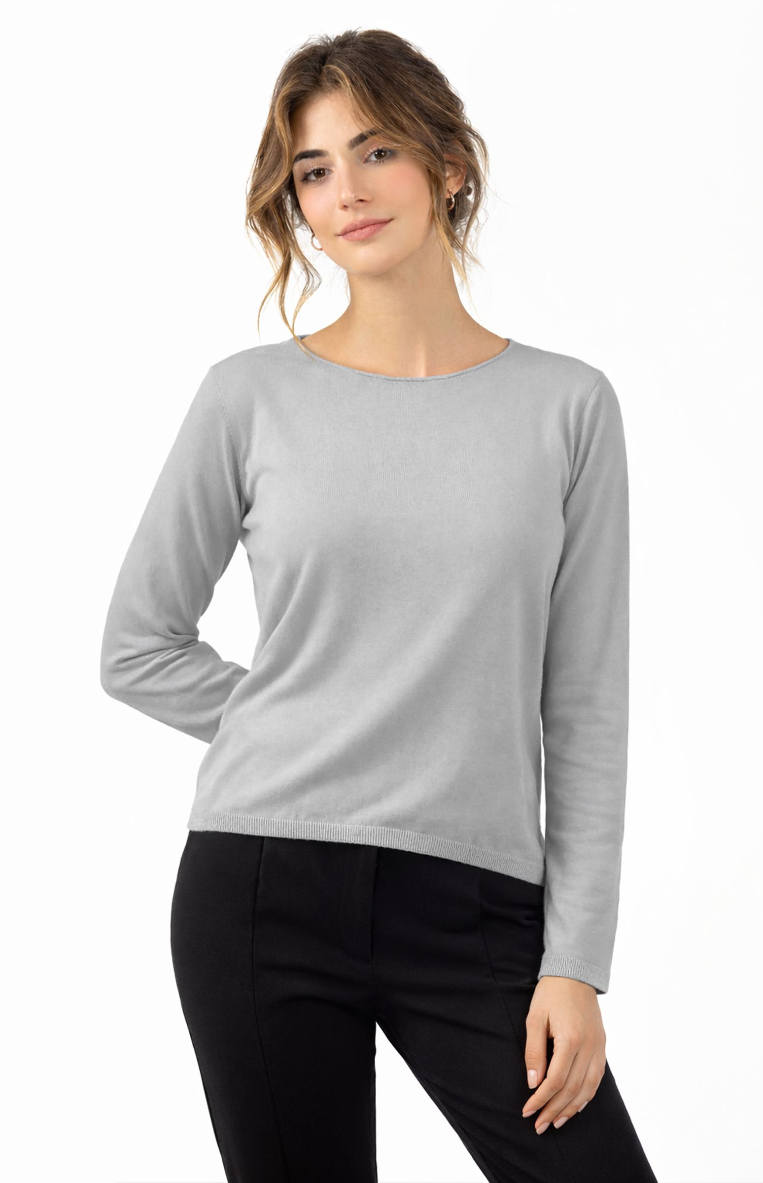 Crew-neck sweater made with bright Silk and very soft Cashmere. A passe-partout shirt that is easy to match and versatile in use. Thanks to its fineness it is suitable as an under jacket, very pleasant on the skin, it maintains heat but at the same time it is cool on the skin and very soft.