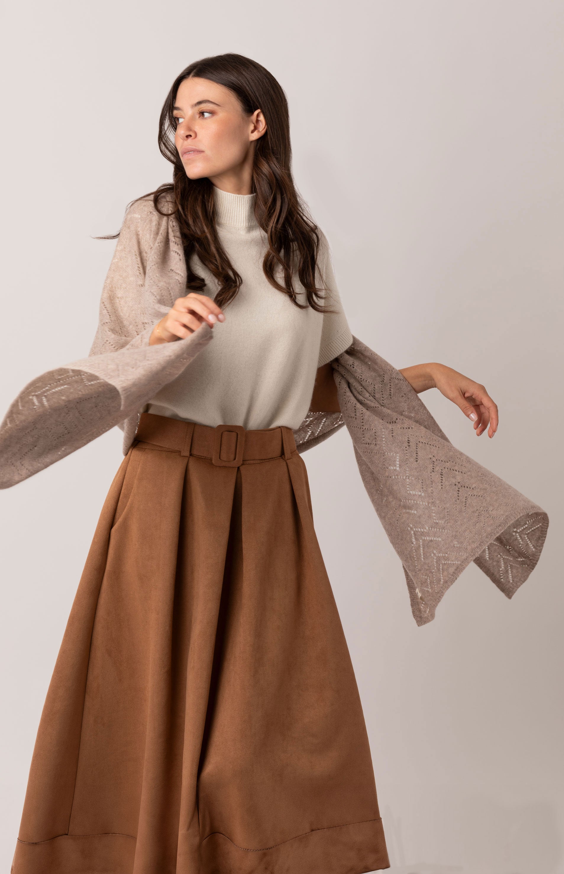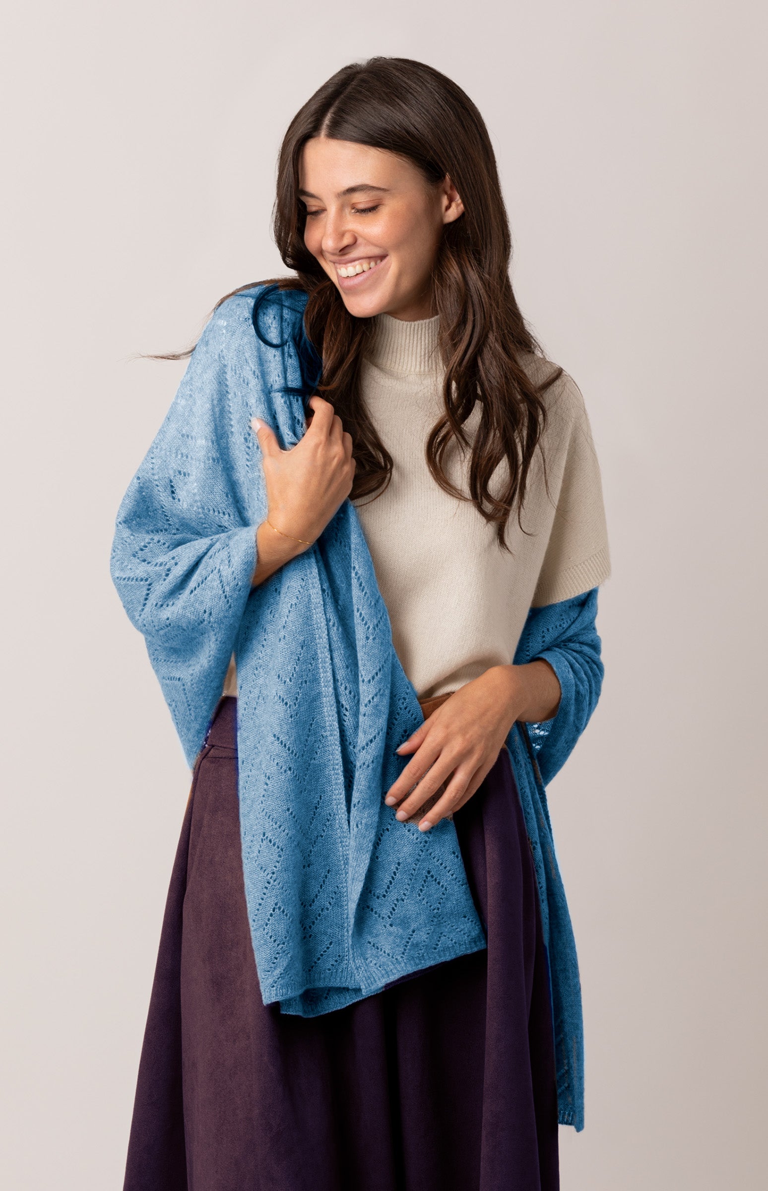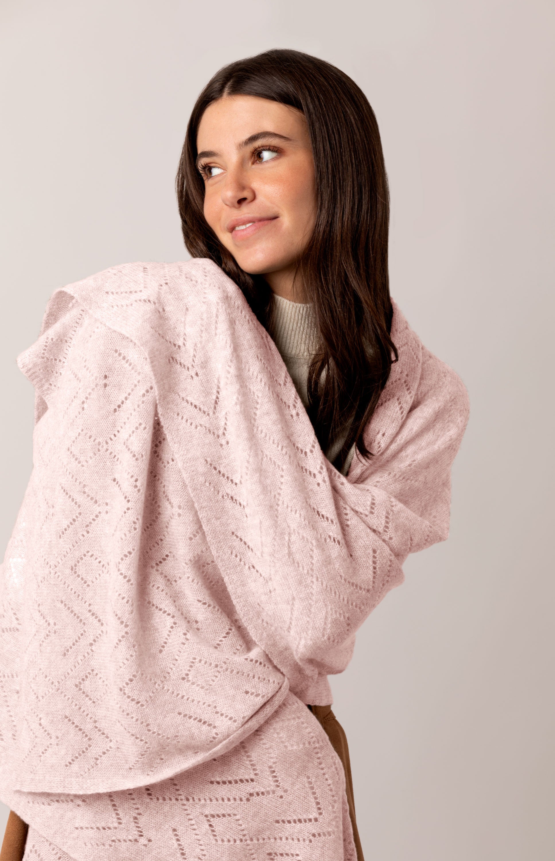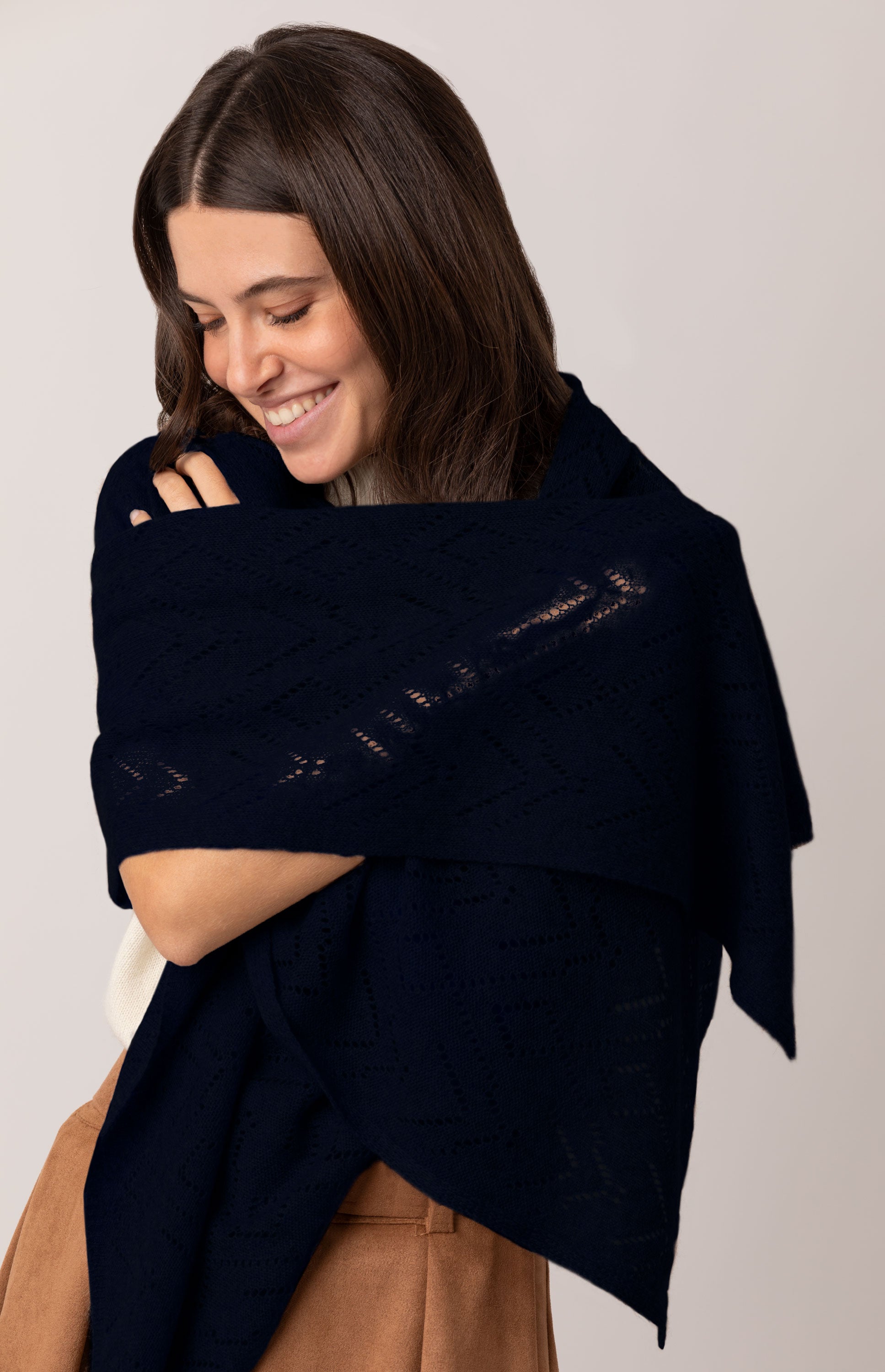 The pointelle-knit cashmere scarf is a refined and elegant accessory, perfect for autumn and winter. The "pointelle" stitch workmanship adds a touch of lightness to the softness of cashmere. Pair it with his hat to create a beautiful, Christmassy hat and scarf ensemble.