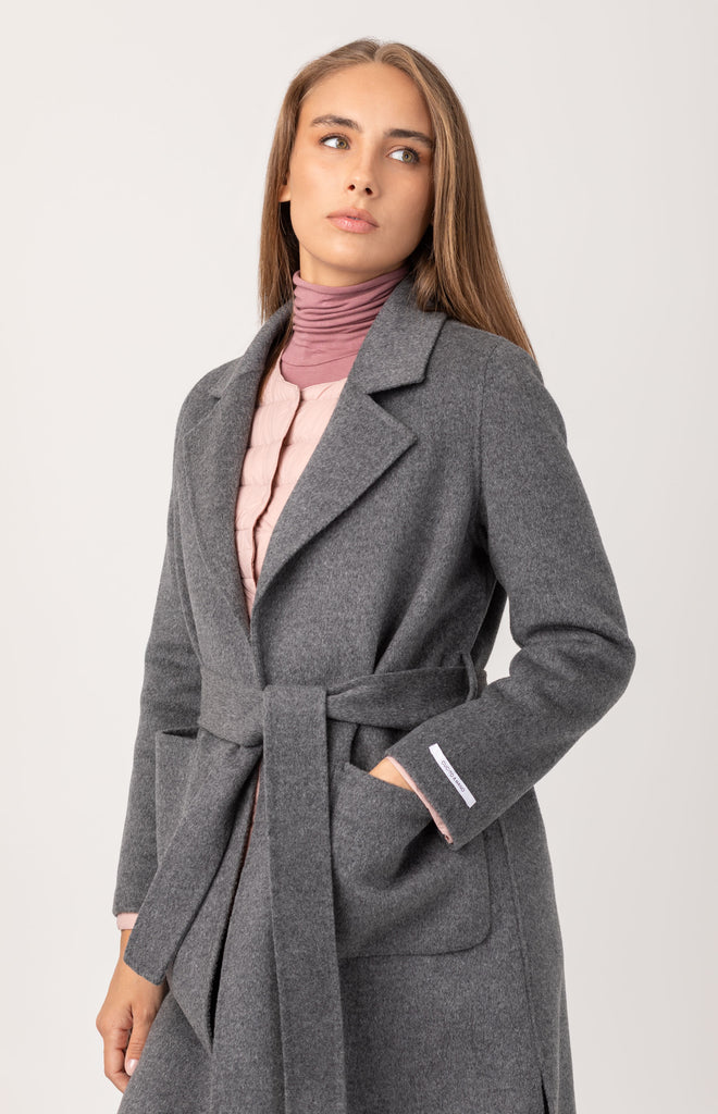 Handmade coat with belt and lined sleeves for women. Side slits and front pockets. The belted coat is suitable for every body type: its belt enhances the silhouette of the body. Iconic and fabulous, it will make you fall in love!