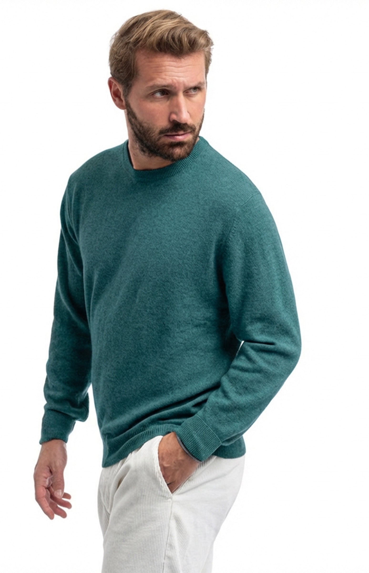 Classic fine single-ply cashmere jumper with a crew neck that combines lightness and supreme comfort. The fine, airy weave gently envelops the body without adding bulk, perfect for mid-season wear. Refined ribbed finishes on the neck, cuffs and hem complete the minimalist design. A soft and cosy fit that enhances the quality of the material. A versatile garment that becomes the star of any conscious wardrobe.