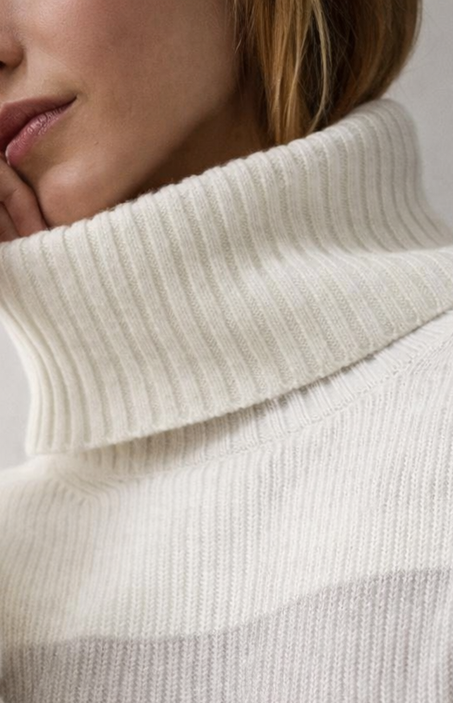 Dolcevita donna in cashmere spesso a coste inglesi, caldo e avvolgente, parte della Linea Limited.
