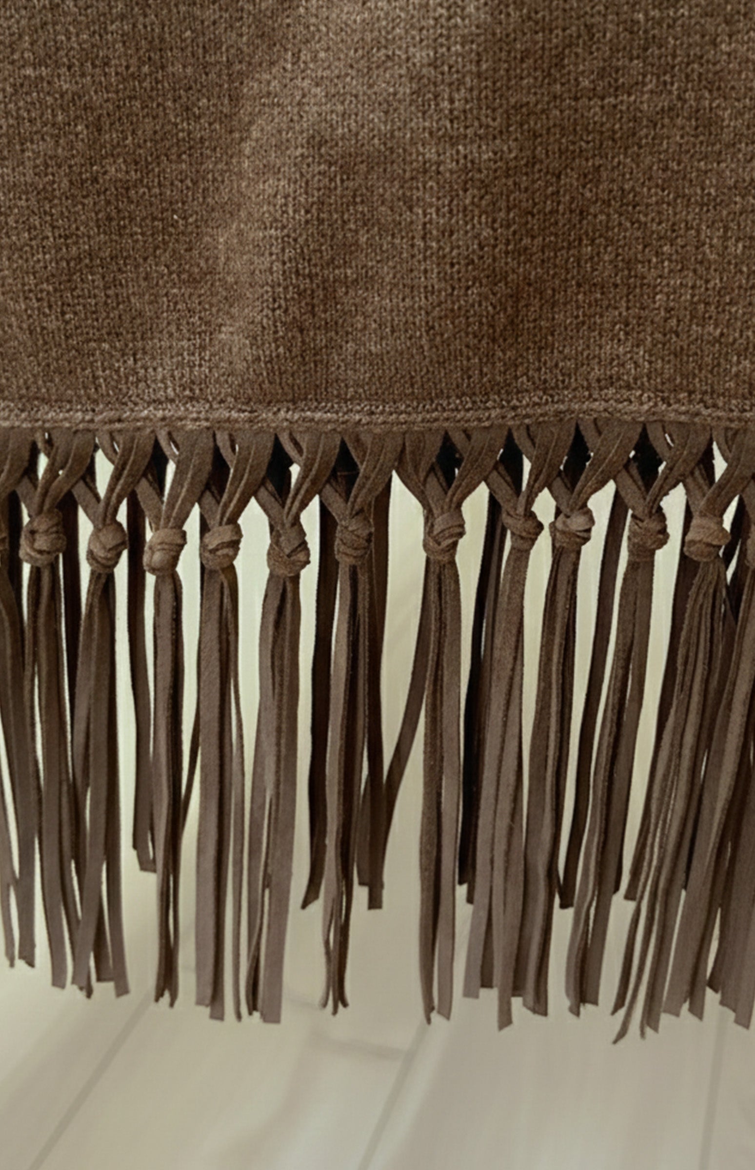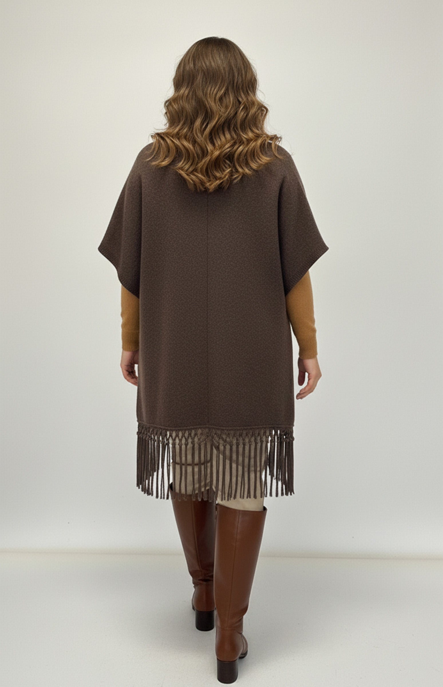 Il design è impreziosito da frange in vera pelle applicate sul fondo, un dettaglio distintivo che dona movimento e carattere, esaltando l’anima artigianale del capo.