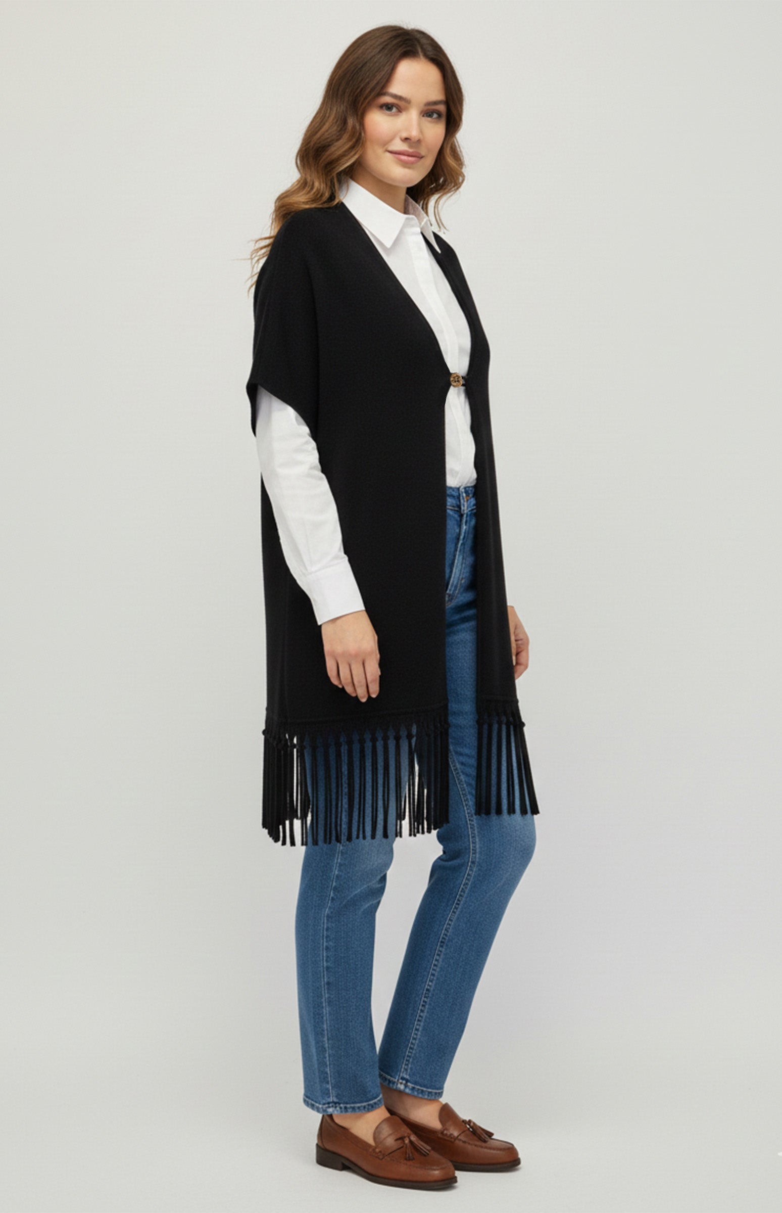 Cardigan gilet da donna realizzato in 100% Eco Cashmere. Un capo che unisce eleganza senza tempo, qualità artigianale e comfort assoluto.