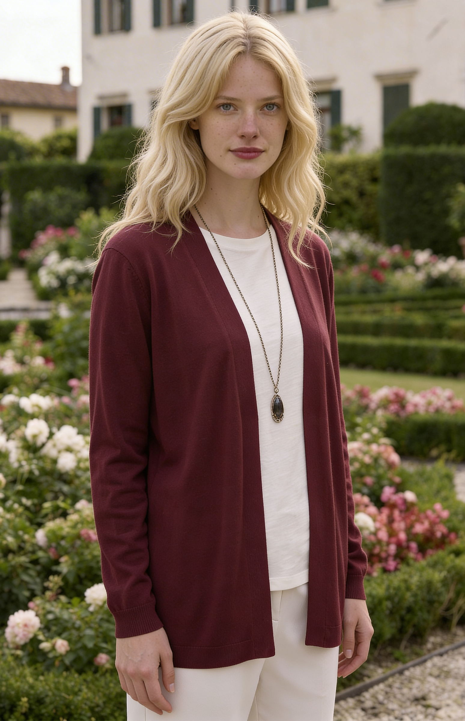 Cardigan lungo senza bottoniera, rifinito a coste su polsi e fondo. Abbinalo con la Canotta per un twin-set elegante. Adatto per la primavera, estate e autunno.