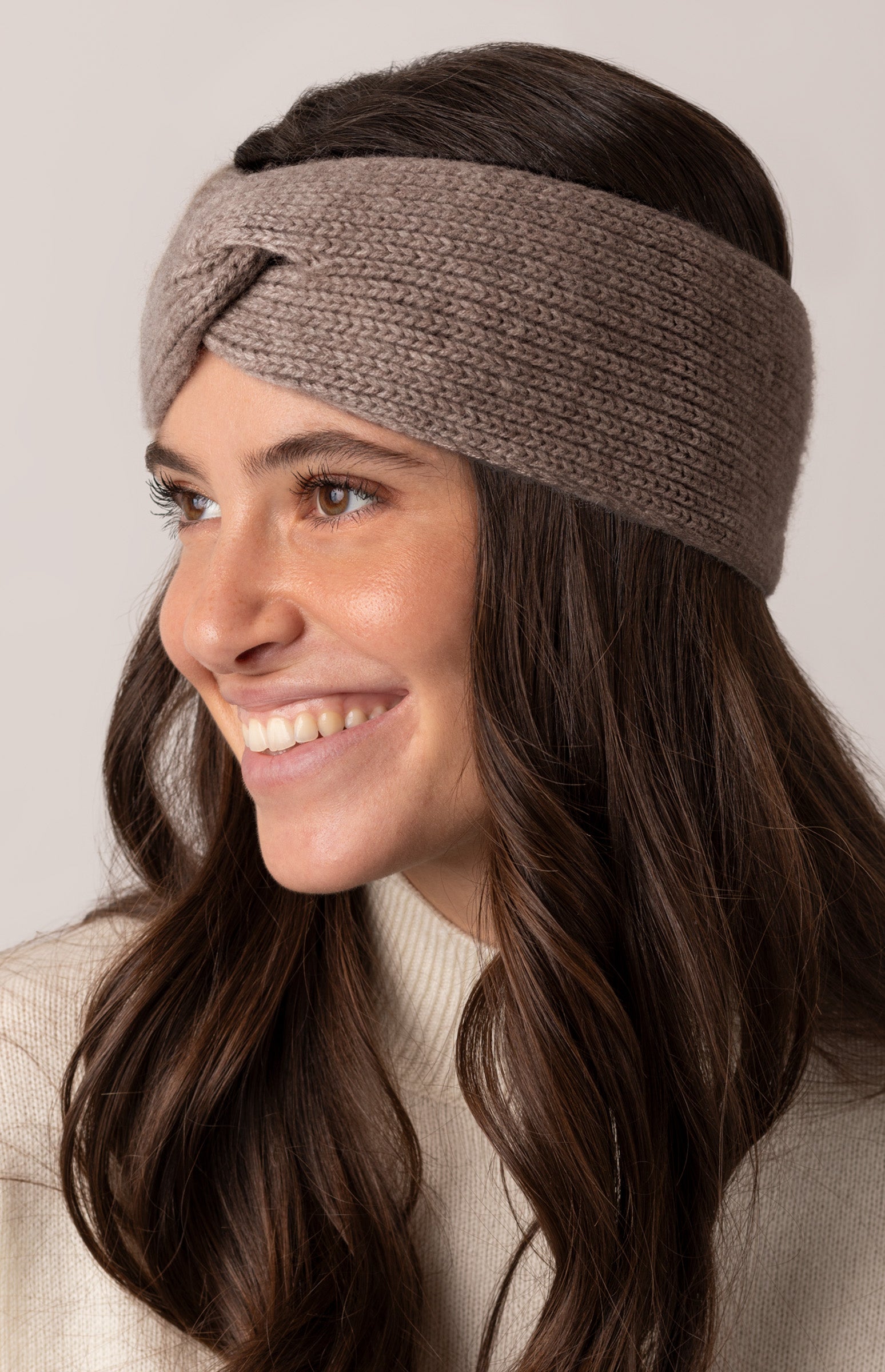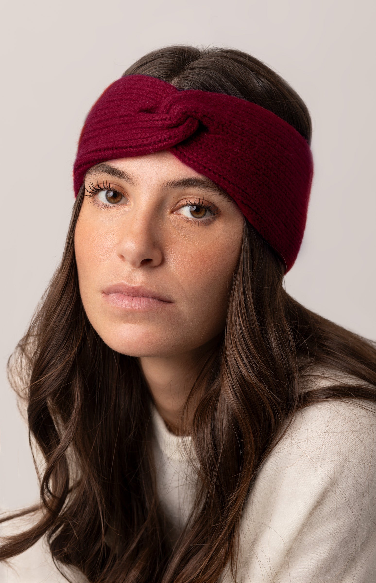 La fascia in cashmere con nodo centrale è l'accessorio perfetto per affrontare l'inverno con stile e comfort. Realizzata in puro cashmere, offre una morbidezza e un calore eccezionali, ideali per proteggere le orecchie dal freddo senza compromettere l'eleganza del tuo look. Il design con nodo centrale aggiunge un tocco di raffinatezza, rendendola versatile e adatta sia a outfit casual che a look più ricercati.