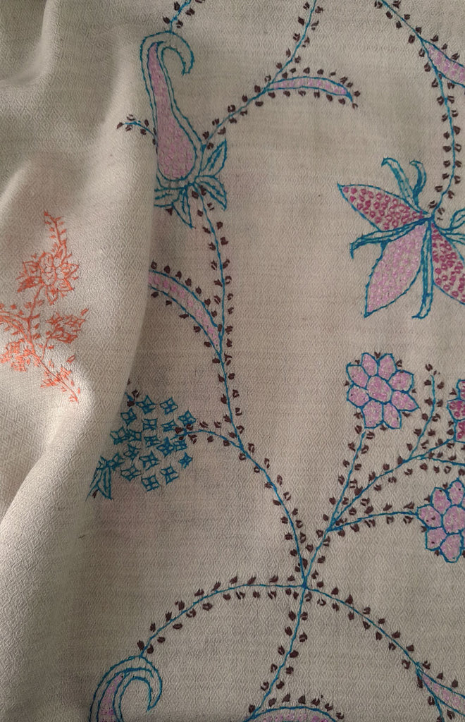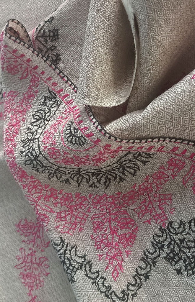 Queste Pashmine in 100% Pashmina Cashmere ricamate a mano sono il frutto di un viaggio nella regione del Kashmir alla scoperta delle vecchie tradizioni attraverso terre remote.